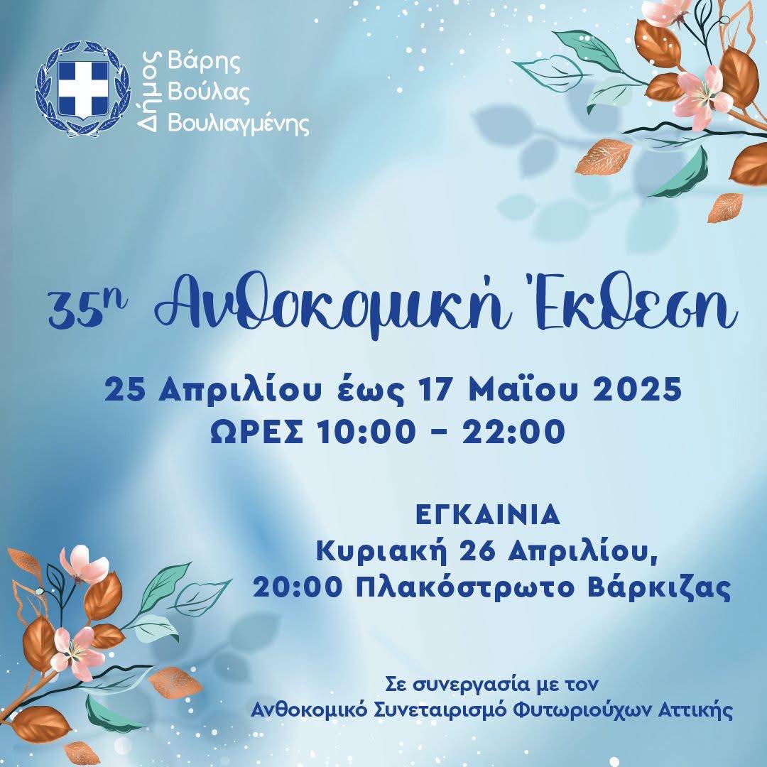 Ένας από τους πιο αγαπημένους ανοιξιάτικους θεσμούς επιστρέφει και φέτος, καθώς η Ανθοκομική Έκθεση Βάρκιζας 2026 ανοίγει τις πύλες της το Σάββατο 25 Απριλίου, προσκαλώντας μικρούς και μεγάλους σε μια ξεχωριστή εμπειρία δίπλα στη θάλασσα.